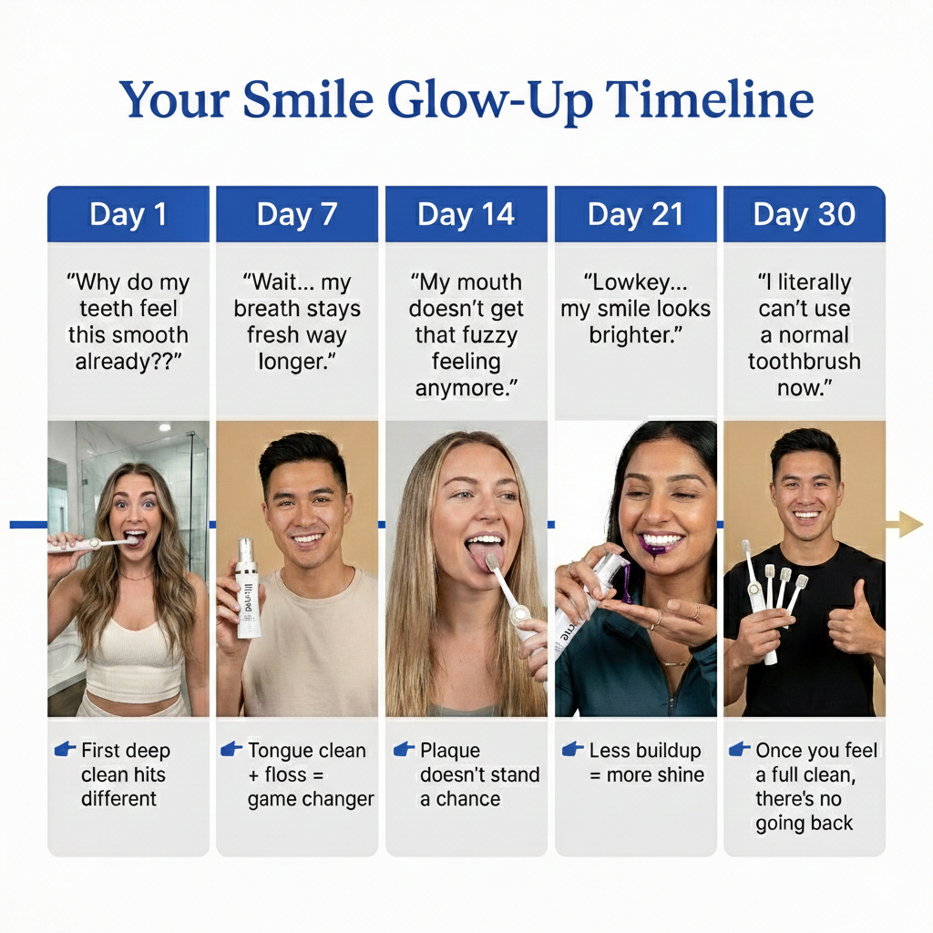 Yes — because Illume doesn’t just brush. The built-in flosser + tongue cleaner mean you’re cleaning your whole mouth, not just the front of your teeth